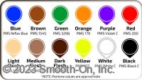 سیستم تطبیق رنگ پنتون معمولاً در صنعت چاپ برای ارتباط رنگ استفاده میشود. در ارتباط با رنگهای رنگی و رنگدانههای Smooth-On، رنگ نمایان شده تقریباً و برآوردی است و تفسیر افراد از این رنگها ممکن است متفاوت باشد. کاربر تعیین خواهد کرد که آیا رنگ یا ترکیبی از رنگها برای لاستیک، رزین، فوم یا محصول دیگری که بهطور خاص برای کاربرد خود استفاده میشود، مناسب است یا خیر. به دلیل تغییرپذیری در محصولات رنگشده، کاربرد، غلظت رنگ و سایر عوامل، Smooth-On هیچگونه ضمانتی در مورد رنگ ارائه نمیدهد.