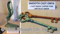 Smooth-Cast™ ONYX™ یک رزین پلییورتان عاری از جیوه است که در دمای اتاق به یک پلاستیک جامد و سیاه عمیق تبدیل میشود. رزینهای ONYX™ راحتی نسبت مخلوط 1A:1B بر اساس حجم را ارائه میدهند و دارای ویسکوزیته بسیار پایینی هستند، بنابراین مخلوط و ریختن آنها آسان است. رزینهای ONYX™ دارای سختی نهایی Shore 80D و خواص فیزیکی و مقاومت حرارتی بالاتری نسبت به سایر رزینهای عمومی هستند. رزین ONYX™ FAST دارای زمان کار 2.5 دقیقه و زمان پخت 10-15 دقیقه است. ONYX™ FAST انتخاب خوبی برای ایجاد اثرات برنز، برنج، مس، نیکل/نقره و غیره به صورت سریع است.