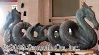 بسیاری از قطعات تزئینی خارجی در هتل و استراحتگاه تمپارک آتلانتیس در باهاما توسط استودیوی MJM در S. Kearney، نیوجرسی طراحی و ساخته شدهاند. اژدهای آتلانتیس که در لابی اصلی قرار دارد نیز یک اثر ساخته شده توسط MJM است. مدل اصلی از خمیر مجسمهسازی ساخته شده بود. قالب لاستیکی با استفاده از لاستیک پلیاورتان PMC-724 شرکت Smooth-On ساخته شد. هنرمندان MJM از تنوع لاستیک به بهترین نحو برای ساخت این قالب پیچیده استفاده کردند. توانایی تغییر ویسکوزیته لاستیک برخی از مشکلات چالشبرانگیز را حل کرد. MJM درون قالب، Matrix NEO را که با رنگدانه و پودر برنز مخلوط شده بود، ریخت تا یک ریختگی ایجاد کند که درست شبیه برنز به نظر برسد. یک پتینه شیمیایی برای ایجاد اثر برنز قدیمی بر روی ریختگی نهایی اعمال شد.