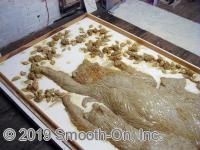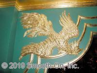 بازگرداندن اتاق چای روسی به زندگی تنها یک مرمت نبود، بلکه ایجاد یک محیط تماتیک کاملاً جدید و تمام چالشهای طراحی مربوط به آن بود. خرس اتاق چای روسی ورودی را تزئین میکند. هنرمندان شرکت Felber Ornamental Plastering، نسخه پیچیده اصلی را با استفاده از خمیر مدلسازی مجسمهسازی کردند. لاستیک سیلیکونی Smooth-On برای ساخت قالب لاستیکی انعطافپذیر استفاده شد. سپس یک لایه از سیستم گچ اصلاحشده duoMatrix® NEOpolymer به سطح قالب برس زده شد، و پس از آن مخلوطی از duoMatrix NEO و الیاف خرد شده به کار رفت که casting حاصل، سبک، مقاوم در برابر آب و بسیار قوی بود. سپس casting نهایی با ورق طلای 23 عیار طلاکاری شد.
