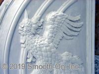 موتیف زیبای طاووس که به طور اولیه توسط هنرمندان Felber Ornamental Plastering با استفاده از خمیر مدلسازی مجسمهسازی شده بود، با استفاده از لاستیک سیلیکونی Smooth-On برای ساخت قالب لاستیکی انعطافپذیر تولید شد. سیستم گچ اصلاحشده duoMatrix NEO دوباره برای تولید casting نهایی که سبک و قوی است، استفاده شد. سپس عناصر با ورق طلای 24 عیار طلاکاری شدند.