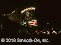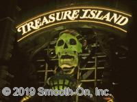 هتل، استراحتگاه و کازینوی جزیره گنج واقع در لاس وگاس، نوادا، در اوایل دهه 90 میلادی افتتاح شد. برای جلب توجه به این تأسیسات جدید و متمایز کردن آن در میان تعداد زیادی از علائم و چراغهای روشن دیگر، نیاز به افزودن یک تابلو بزرگ و هیجانانگیز به نوار لاس وگاس احساس میشد. استودیوی MJM (South Kearney, NJ) برای طراحی و ساخت تابلو بزرگ با جمجمه دزدان دریایی به عنوان نقطه مرکزی آن قرارداد بست. MJM با شرکت Smooth-On, Inc. تماس گرفت تا گزینههای مواد برای این پروژه بزرگ را مورد بحث قرار دهد.
