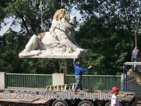 نصب دو شیر در ماه ژوئیه انجام شد و دو شیر باقیمانده در اوت 2000 به مکان قبلی خود بازگردانده شدند. ساکنان پارک وودلی که از زمان برداشتن شیرها در سال 1993، آنها را گم کرده بودند، با نامگذاری یکی از شیرها به نام “رولند” به یاد هنرمند اصلی، جشن گرفتند. شیر دیگر به نام “رینالدو” نامگذاری شد به خاطر هنرمندی که شکوه و زیبایی اصلی مجسمه را بازگردانده بود.
